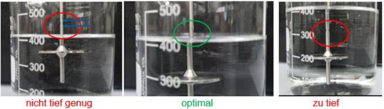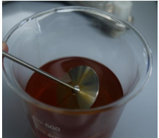– Trục quay được nhúng vào dung dịch (beaker 600ml) sao cho chất lỏng ở mức giữa (mốc nhỏ trên thanh trục quay)