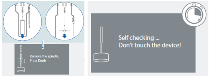 – Thực hiện điều chỉnh tự động được mô tả trên màn hình, không găn trục quay. Quá trình này đươc gọi là ‘Auto zero’