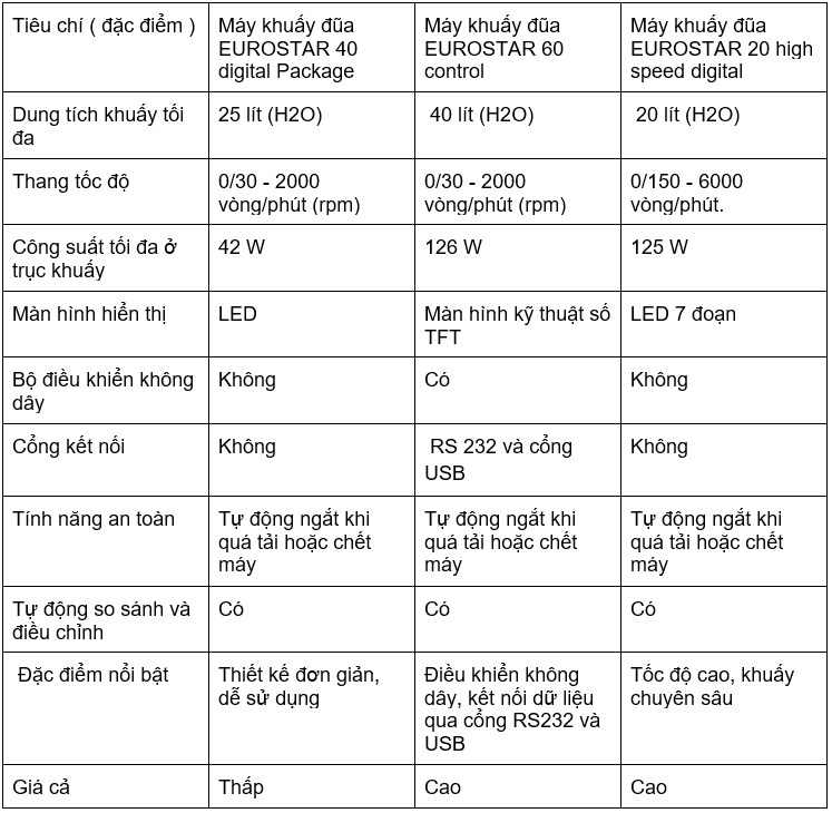Nếu bạn đang còn phân vân về các dòng máy khuấy đũa EUROSTAR ? Bạn chưa biết nên sử dụng loại sản phẩm nào phù hợp với mình ? Thông qua bài viết dưới đây sẽ giúp bạn phân biệt những đặc điểm nổi bật của từng dòng máy EUROSTAR 40 digital Package, EUROSTAR 60 control và EUROSTAR 20 high speed digital.