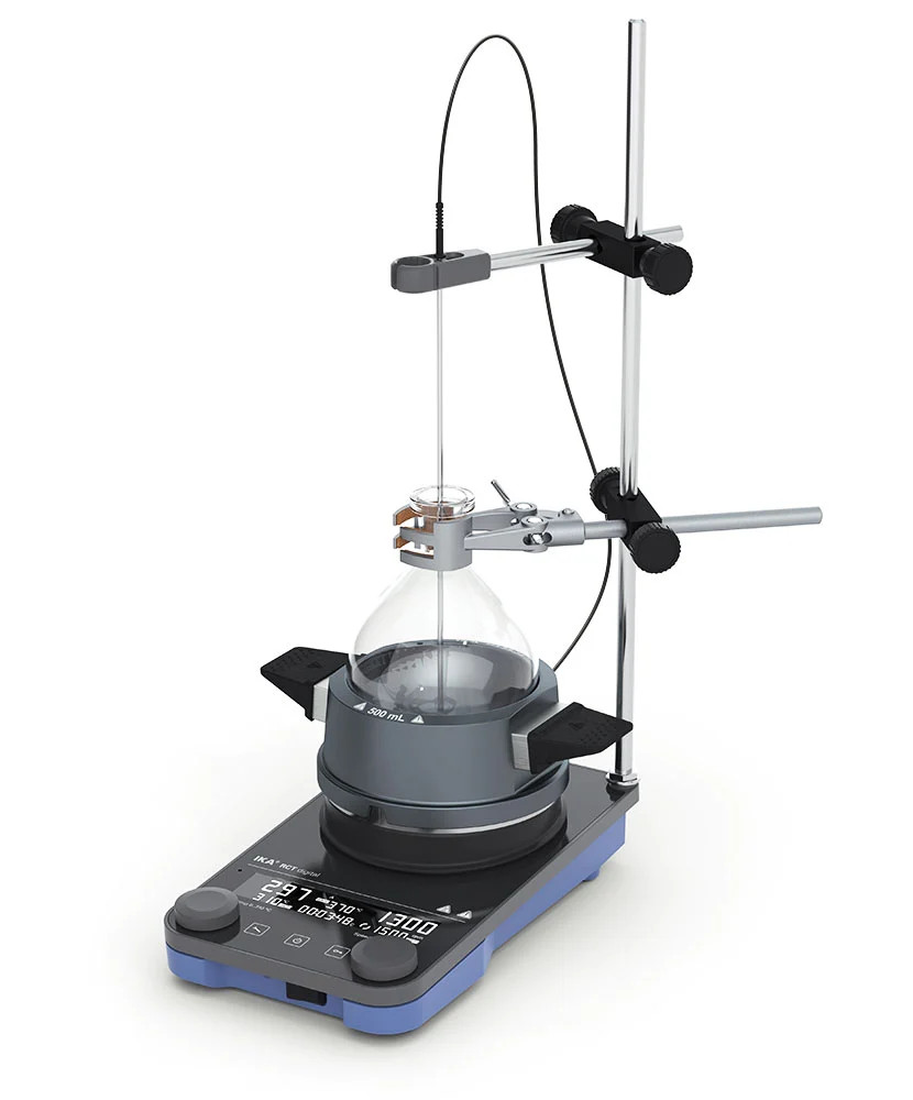 Máy khuấy từ gia nhiệt ika có đỉnh tròn được làm bằng hợp kim nhôm. Nó khuấy dung tích lên đến 20 lít (H2O) và hoạt động ở tốc độ dao động từ 50-1500 vòng/phút.