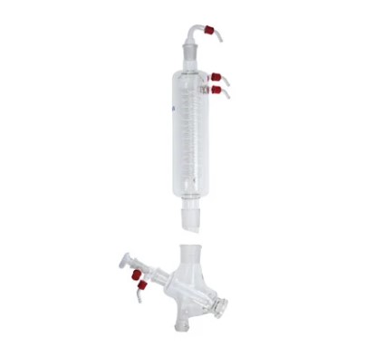 Vertical intensive condenser with double jacket and distributor for particularly efficient condensation. The solvent to be distilled can be continuously fed in at the distributor using the PTFE inlet tube.