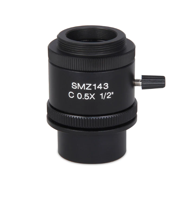 The 0.5X C-mount camera adapter allows Moticams to connect with the SMZ-143 trinocular microscopes.